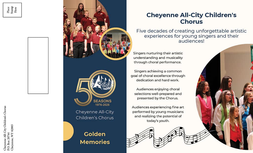 Cheyenne All-City Children’s Chorus is a 501(c)3 non-profit organization. All donations made to Cheyenne ACCC are tax deductible.